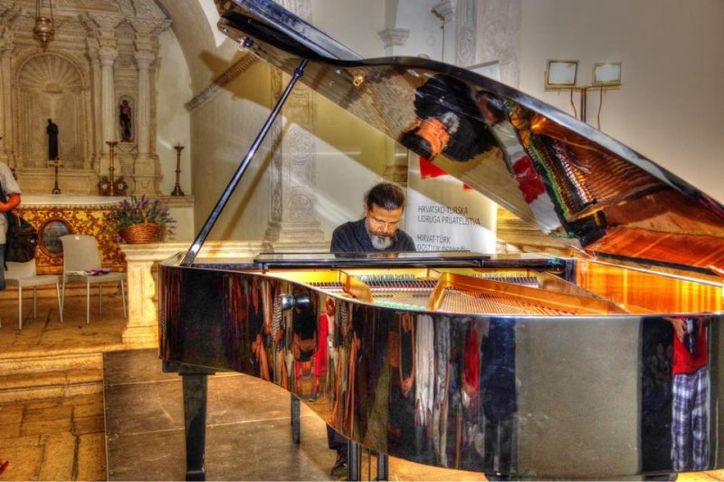 Between 2000-2006 he worked with Bloomington/Indiana/USA-based bands Salaam, Silk Road and Orquesta Son, giving concerts featuring Middle Eastern, Central Asian and South American music respectively; with them he took part in many educational seminars, symposiums, festivals and similar events. In the mean time he continued to work as an accompanist quite frequently, continuing to give classical recitals. During this time he began to play piano for silent movies in Bloomington for the Ryder Film Series. It was also during those same years that he got to take part in many creative projects with dancers, poets, trapeze artists, jugglers, electronic music and multi-media artist. Moreover, he participated in experimental Avant-garde concerts with the band Qwertyt, of which he is among the founding members. During this period he recorded two solo albums “Transformations” (2003) and “Turkish Music on Piano” (2005) and took part in 3 of Salaam’s albums.